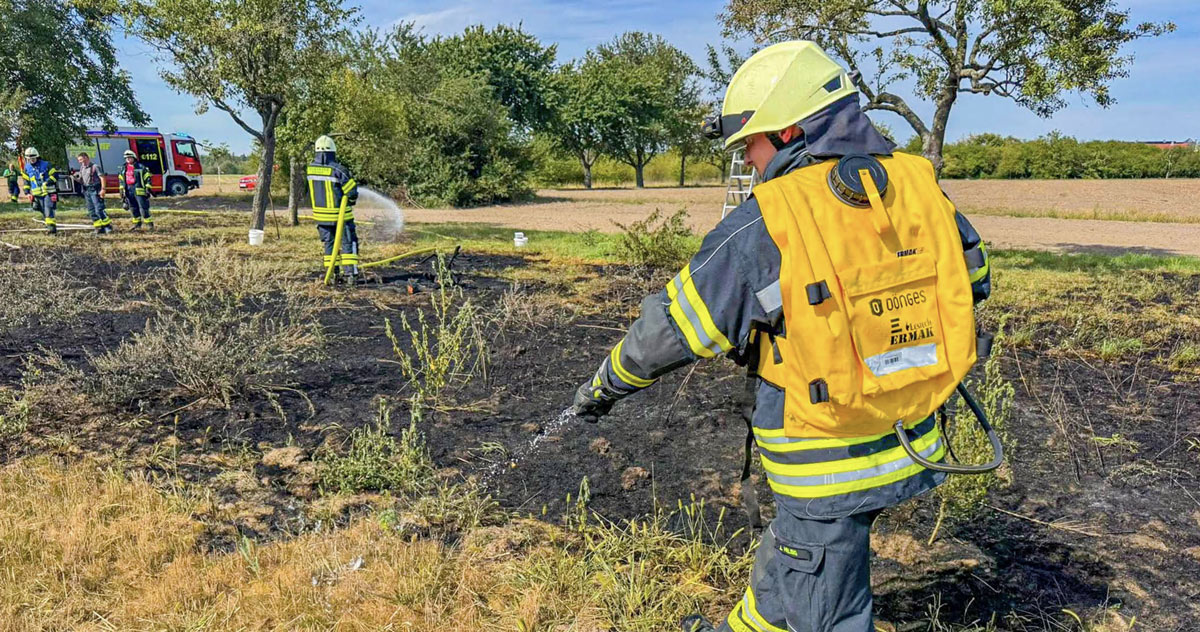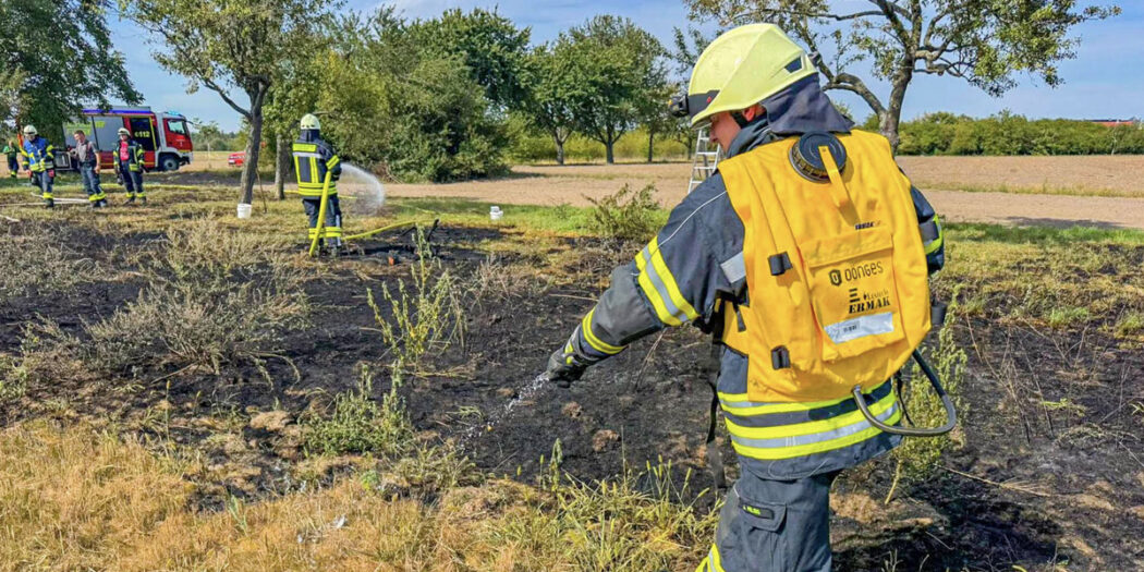 Forst, 27.08.25 | Eine außer Kontrolle geratene Reisigverbrennung hat am Dienstagnachmittag einen Flächenbrand nahe der Kreisstraße K3524 ausgelöst. Die Feuerwehr Forst war mit vier Fahrzeugen im Einsatz, unterstützt von der Feuerwehr Ubstadt-Weiher.