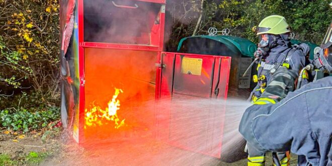 Auch an der zweiten Einsatzstelle bot sich den Feuerwehrleuten dasselbe Bild – ein vollständig brennender Altkleidercontainer. Wieder gelang es den Kräften, die Flammen unter Atemschutz schnell zu löschen. Insgesamt war die Feuerwehr Forst mit drei Fahrzeugen im Einsatz.