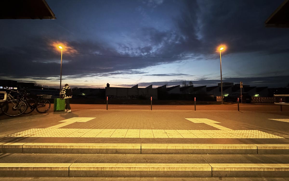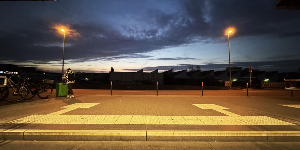 Kennen Sie die Ecke? Wer am Abend vom Bahnsteig durch die hell erleuchtete Unterführung läuft, wird am Treppenaufgang von einem dunklen Nichts empfangen. Unangenehm! Die sich nach links öffnende Straße „Am Alten Güterbahnhof“ verstärkt mit ihrem verwahrlosten Eindruck das beklemmende Gefühl erst recht.