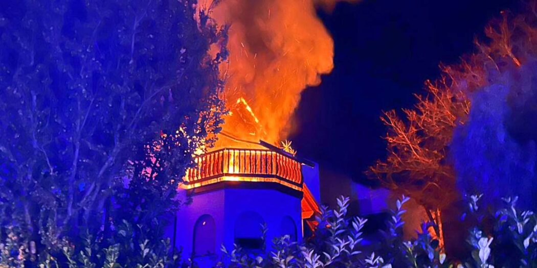 OBERGROMBACH, 31. Oktober 2025 | In der Nacht zu Freitag kam es in der Straße „Obere Au“ in Obergrombach zu einem Dachstuhlbrand. Eine Person wurde verletzt, zwei weitere blieben unverletzt.