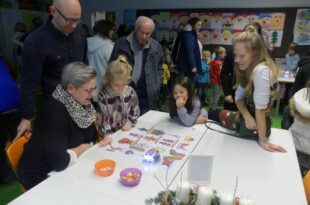 21.12.23 | Die neunjährige Hanna aus der vierten Klasse erklärt Mattis, sieben Jahre und aus der zweiten, sehr souverän, wie er mit dem Blue-Bot umgehen …