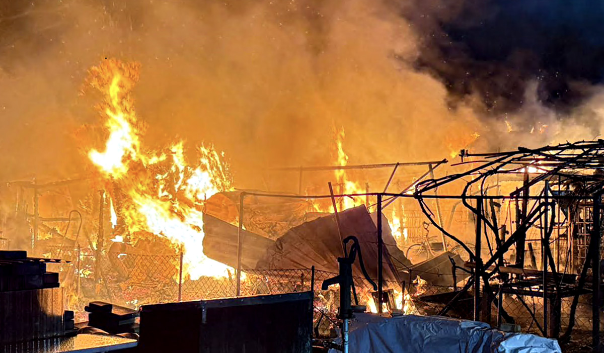 BRUCHSAL, 25. FEBRUAR 2026 | In der Kleingartenanlage Hanfröste sind in der Nacht fünf Gartenhütten und ein Unterstand vollständig abgebrannt. Die Feuerwehr Bruchsal war mehr als vier Stunden im Einsatz, die Polizei ermittelt zur Brandursache.