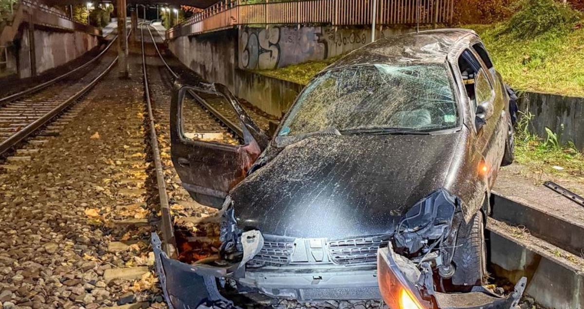 Gegen 3 Uhr kam ein mit drei Personen besetzter Renault Clio in der Karlsruher Hardecksiedlung von der Straße ab. Das Fahrzeug überschlug sich nach dem Überfahren eines Bordsteins und kam schwer beschädigt im Gleisbett der Straßenbahn zum Stillstand. Die beiden männlichen Insassen flüchteten unmittelbar nach dem Crash zu Fuß und ließen eine schwer verletzte Mitfahrerin im Wrack zurück.