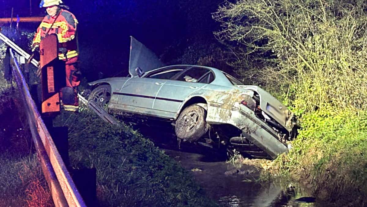 UNTERGROMBACH, 30. November 2025 | Die Feuerwehr Untergrombach wurde am frühen Sonntagmorgen um 02:29 Uhr zu einem Verkehrsunfall in der Büchenauer Straße kurz vor dem Ortsausgang alarmiert. Ein Pkw war aus ungeklärten Gründen von der Fahrbahn abgekommen und im Bachbett der Grombach zum Stillstand gekommen.