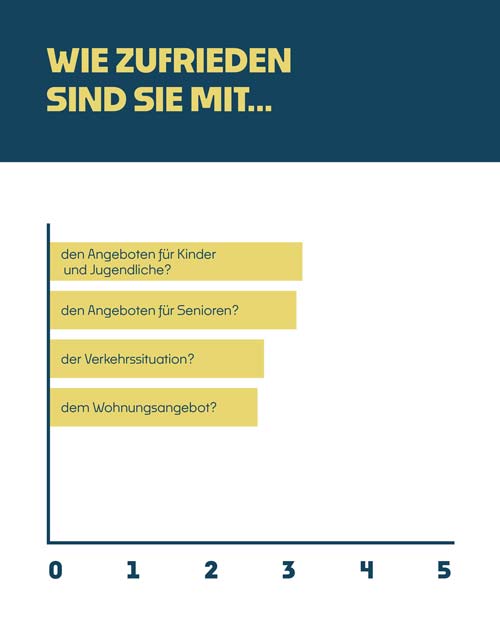 Die Bürger konnten sich zu verschiedenen Aspekten des Gemeindelebens äußern. Positiv bewertet wurden vor allem die Sportangebote, das Einkaufsangebot sowie die Familienfreundlichkeit in Karlsdorf-Neuthard.