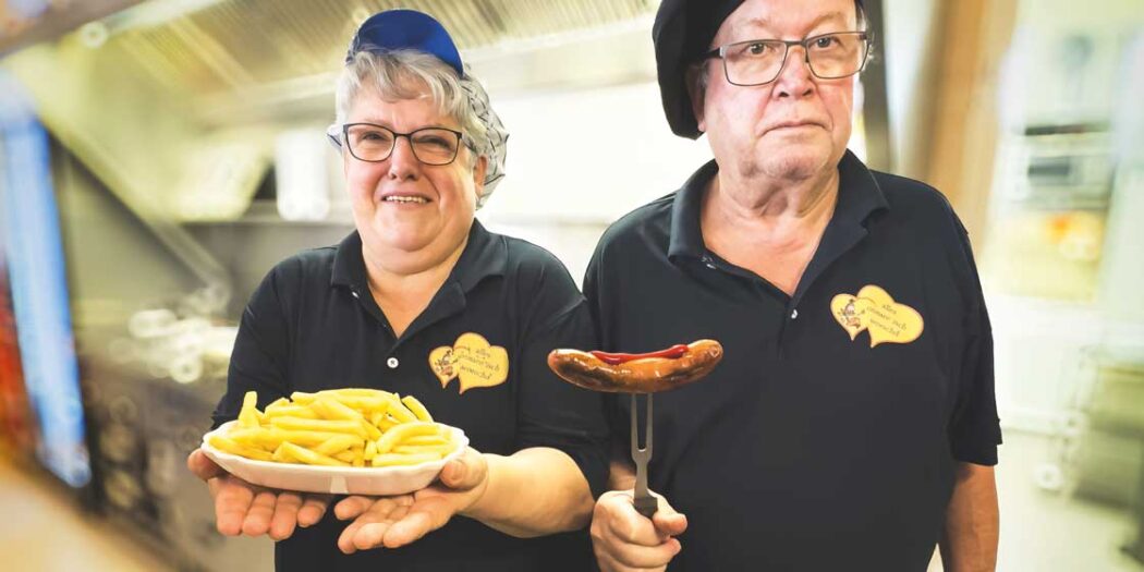 Reinhold werkelt währenddessen hinten in der kleinen Küche, wo aus wenigen Zutaten Klassiker entstehen, die längst Kultstatus haben: Currywurst, Schaschlik, Bratwurst. Aber es gibt eben auch mehr: Gulasch, handgemachte Mauldäschle, Rouladen und Königsberger Klopse wie aus Omas Küche. Und das Beste: Jeden Tag gibt’s was anderes auf der Tageskarte – Abwechslung ist also garantiert. Angelika sagt dazu mit einem Grinsen: „Mia kenne koi Kaloria, die ma nedd leida kenna. Bei uns wird die gute Hausmannskoscht serviert, wie bei meiner Oma.“ Und genau so ist es.